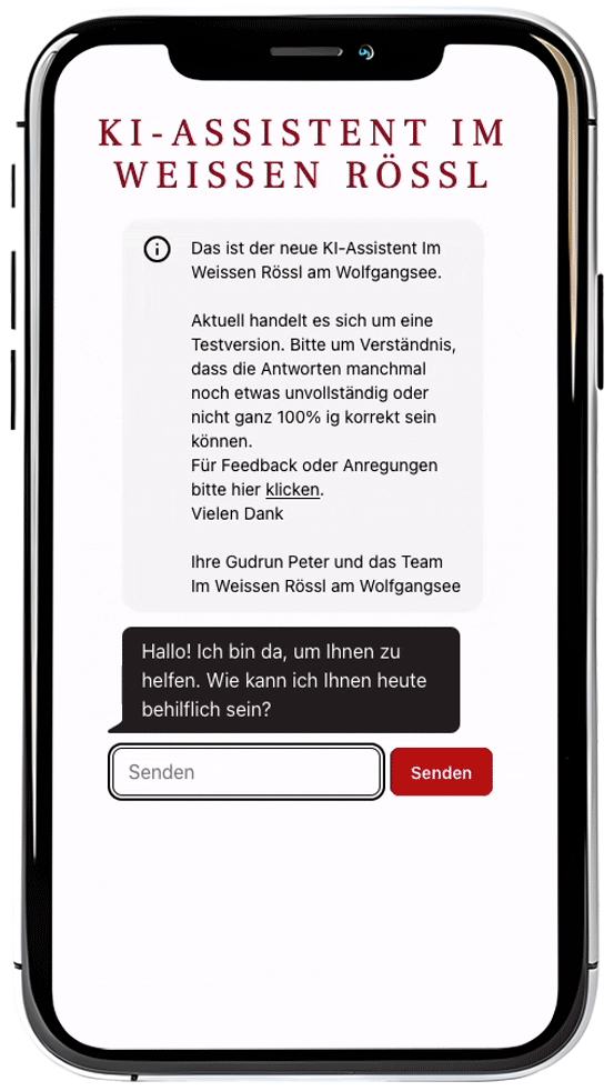 Probieren Sie den KI-Assistenten direkt aus beim Romantik Hotel Im Weissen Rössl.